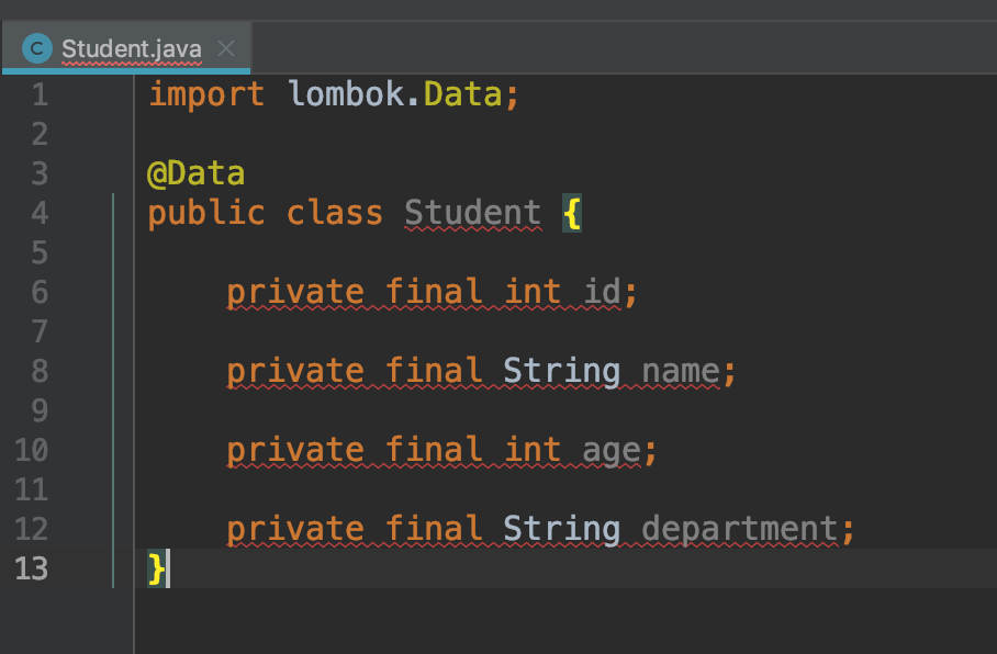 이런 자바의 단점을 해소하기 위해서 프로젝트 롬복(Project Lombok)이 생겼다. 롬복 어노테이션을 이용해서 Student 클래스를 다시 정의해보자.