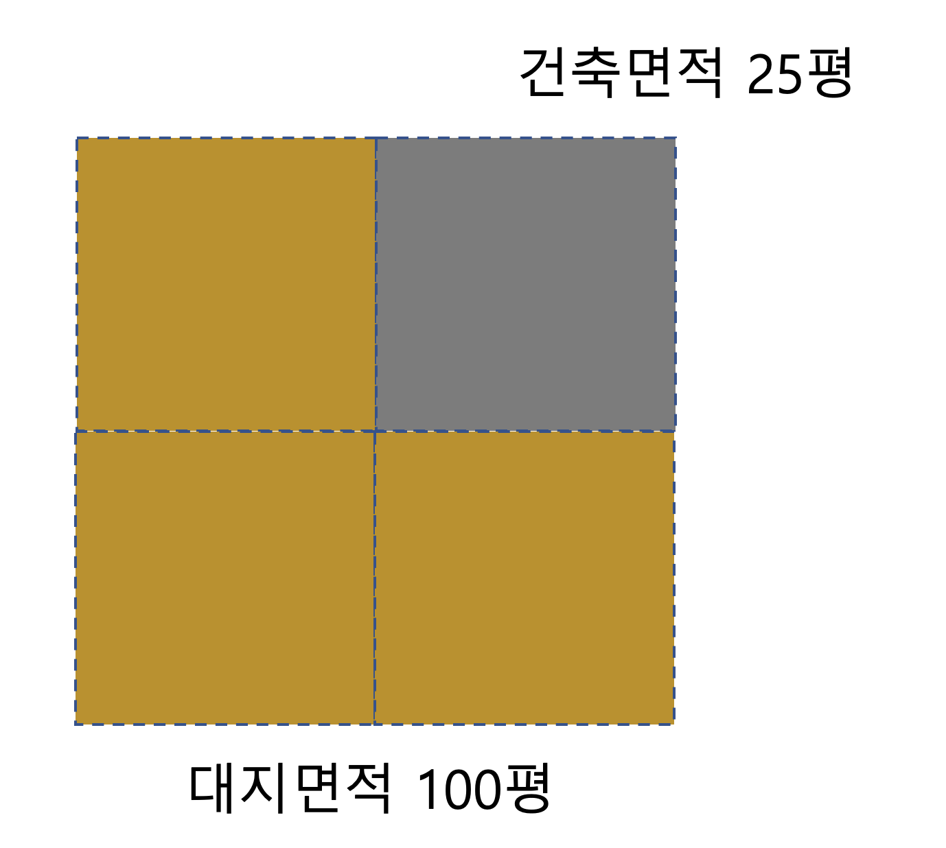 간단하게 그림으로 설명해보겠습니다. 100평짜리 땅에 25평짜리 건물을 짓는다고 생각해보겠습니다.
