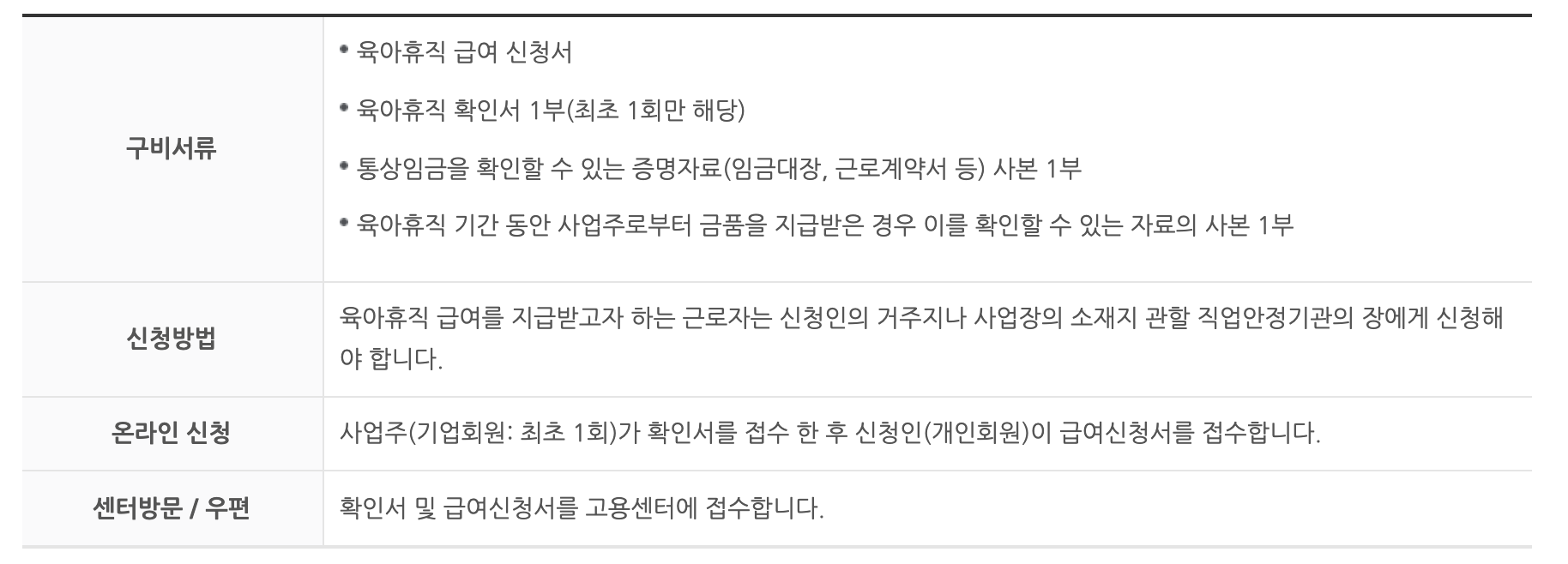 육아휴직을 시작한 날 이후 1개월부터 매월 단위로 신청합니다. 다만 당월 중에 실시한 육아휴직에 대한 급여의 지급 신청은 다음달 말일까지 해야합니다. 매월 신청하지 않고 기간을 적치하여 신청할 수도 있는데요. 다만 육아휴직이 끝난 날 이후 12개월 이내에 신청해야합니다. 12개월이 지나버리면 급여가 지급되지 않습니다. 잊어버리지 않게 주의하세요.