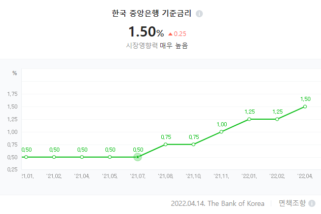 한국은행의 금융통화위원회(이하 금통위)가 14일 오전 열린 통화정책방향 회의에서 현재 연 1.25%인 기준금리를 1.50%로 0.25% 포인트 인상하기로 결정했습니다. 이로써 기준금리는 2019년 7월 이후 3년여 만에 1.5% 수준으로 다시 높아졌습니다.