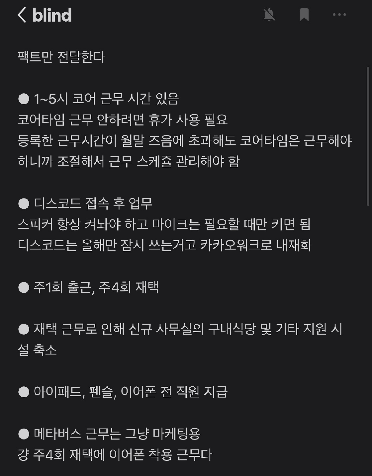 메타버스 근무제에 대한 블라인드 소식