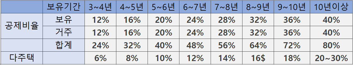 다만 12억원 이상분에 대해서는 장기보유특별공제가 적용되는데요. 상생임대인의 경우 보유기간에 따른 공제는 받을 수 있지만 거주기간에 따른 공제는 받을 수 없기 때문에 1가구 1주택 거주자에 비해 양도세를 조금 더 내야합니다.