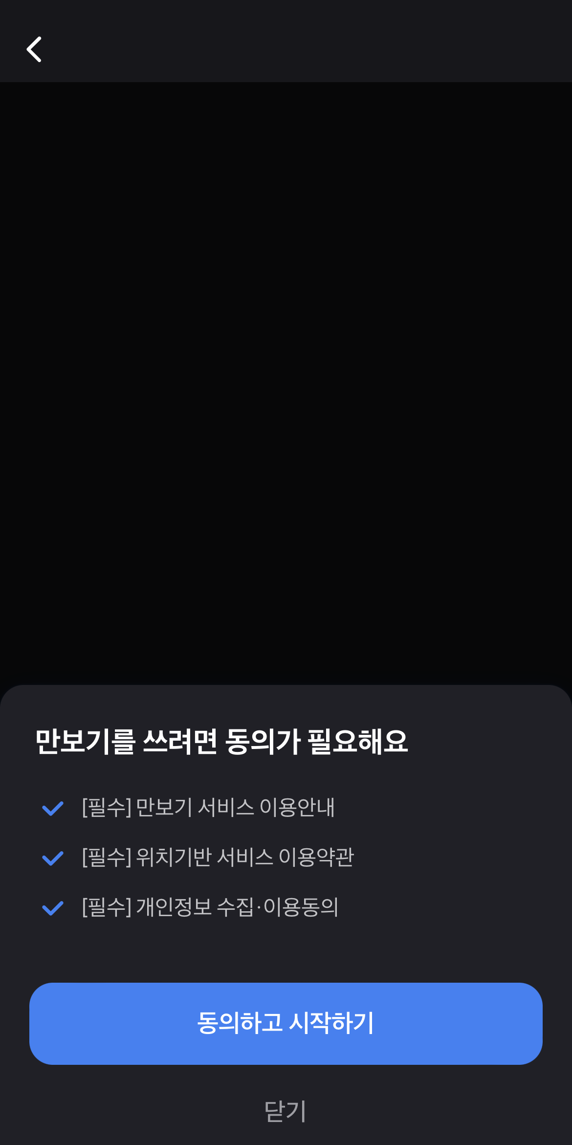 저는 토스 만보기 기능을 처음 사용했기 때문에 최초 동의가 필요합니다. 만약 기존 만보기 서비스를 사용하고 있었다면 새로운 만보기 혜택으로 전환할 것인지를 물어봅니다. 전환해도 되고 전환 안해도 되지만 새로운 만보기 서비스를 사용하게 되면 이전 만보기로 돌아갈 수는 없습니다.