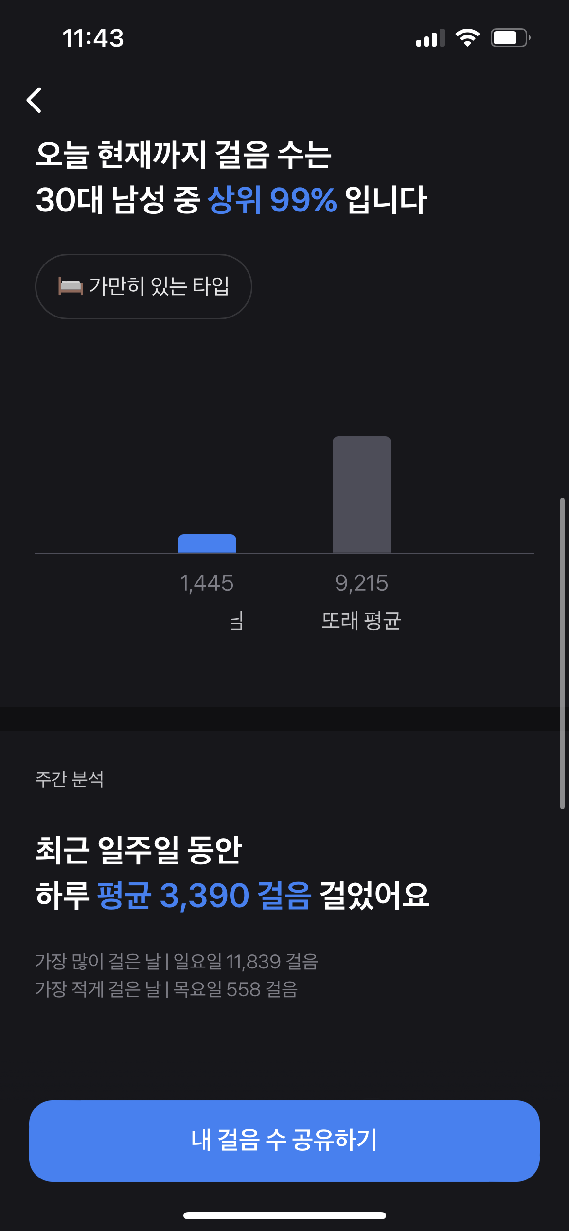 그 밖에 토스 만보기가 수집한 정보를 이용한 통계와 운동 효과 정보 등을 보여주기도 합니다.