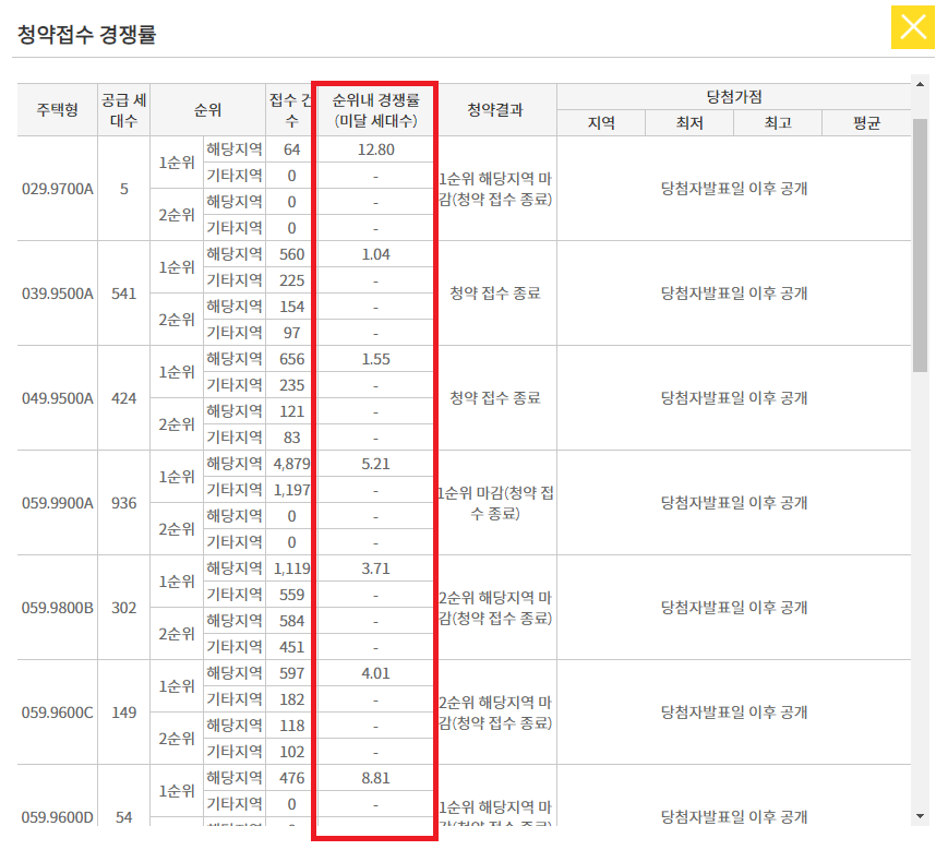 또는 청약 경쟁률을 보고 미분양이 날 것 같은지 아닌지도 간접적으로 알아볼 수 있습니다.