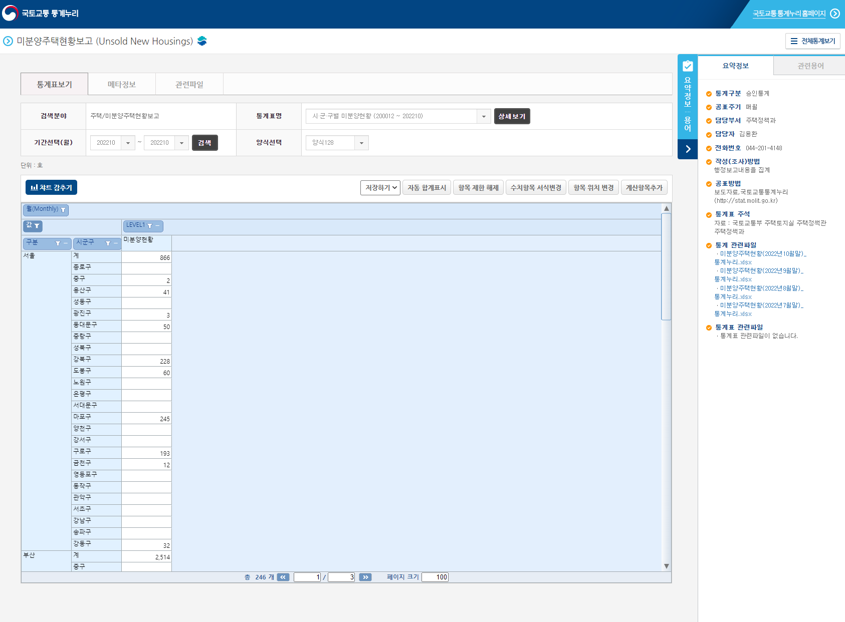 아파트 미분양 확인 - 국토교통부 통계누리
