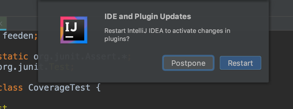 새로운 설정을 적용하기 위해서는 인텔리 제이를 재시작 해야한다.