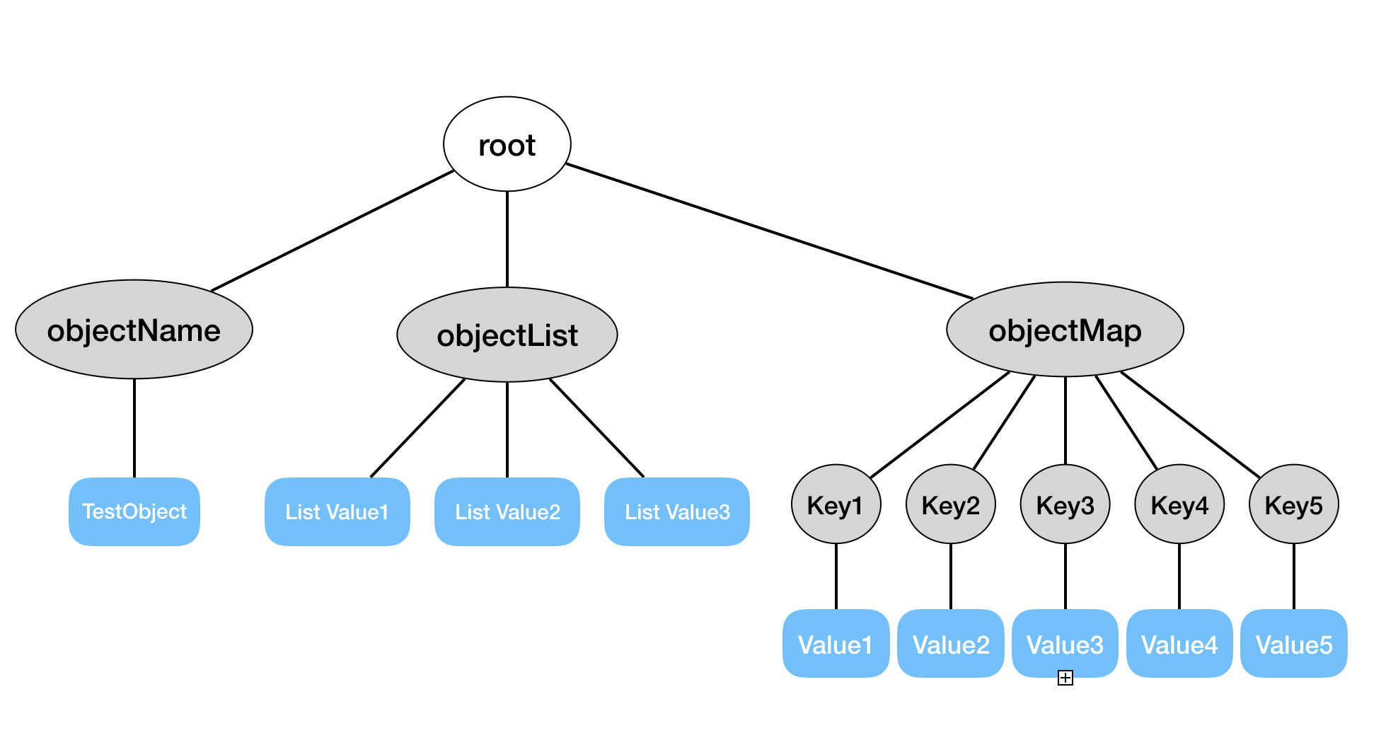 데이터 모델 트리에서 objectName에 해당하는 갑소가, objectList 중 인덱스가 1인 값, objectMap 중 키가 Key1인 값을 뽑아오는 예제다.