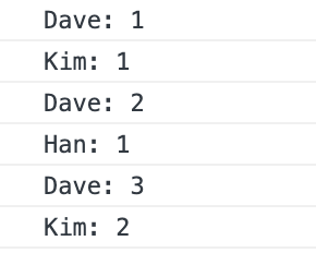 인자를 준 경우 인자 값과 동일한게 몇 번 호출되었는지를 출력해준다. 다음 코드를 보자.