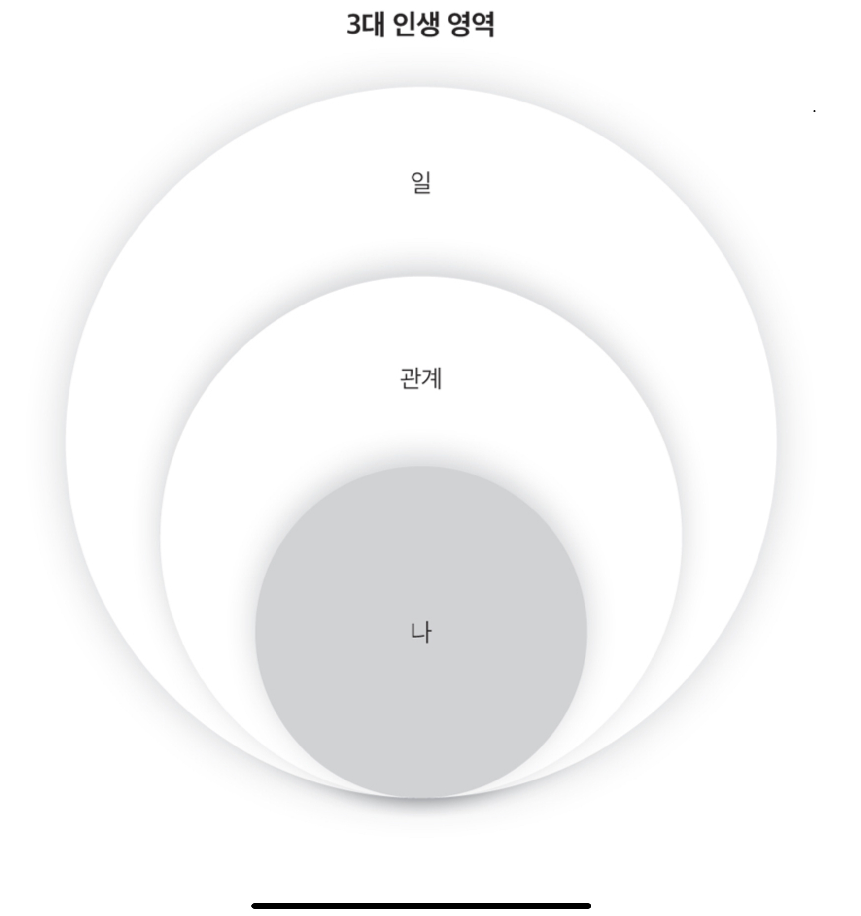 3개의 껍질에서 가장 중요한 것은 역시 '나'입니다. 이 세상은 결국 1인칭입니다. 내가 행복하면 세상은 아름답고, 내가 불행하면 봄에 흩날리는 벚꽃도 저주스러운 쓰레기가 됩니다. 내가 나를 돌보지 않으면 관계가 망가지고, 결국 일에서 최고의 기량을 발휘할 수 없게 됩니다.