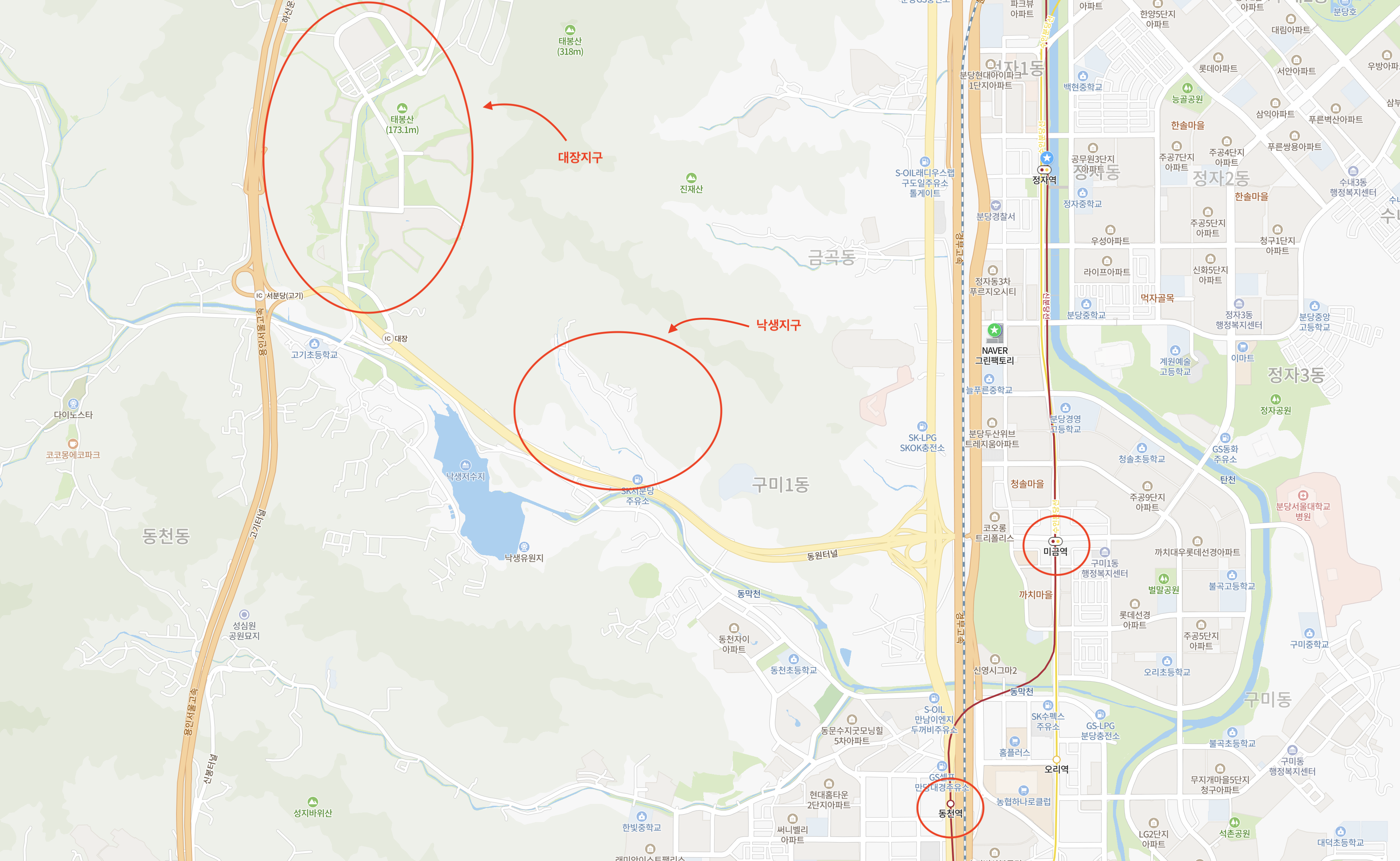 성남 낙생지구는 요즘 핫한 분당 대장지구와 인접해있으며, 분당의 미금역과 죽전의 동천역에 인접해있습니다. 성남 낙생지구는 지하철 역세권과는 거리가 약간 멉니다. 도보로 지하철을 이용하기엔 무리가 있지만 단지가 조성되고 신분당선까지 연결되는 버스망이 갖춰지면 그래도 30분 안쪽으로 신분당선을 이용할 수 있을 것으로 보입니다.
