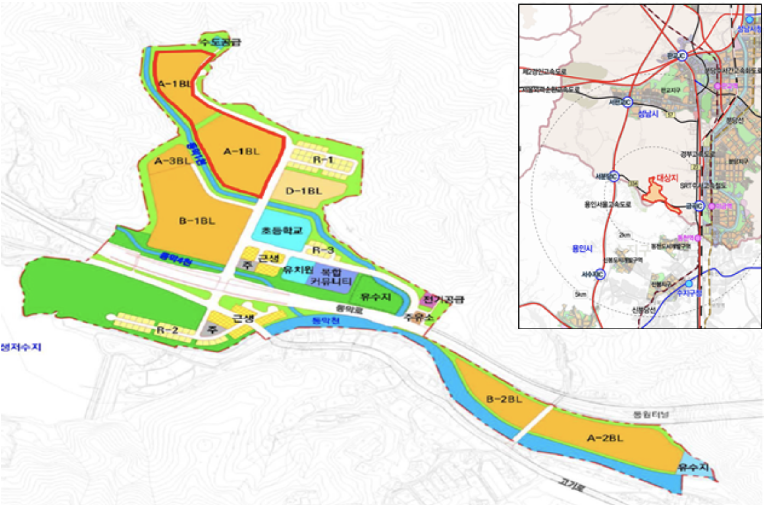 성남 낙생지구 인근에는 낙생저수지가 있습니다. 낙생저수지와 연계해서 수변공원 등 낙생지구 밖에 있는 녹지 여건을 활용할 수 있습니다. 이 지역 주변이 정말 한적하거든요. 조금만 더 서쪽으로 가면 고기리도 있습니다. 여름에 백숙먹으러 가기 좋습니다. 아무튼 주변의 녹지 여건을 적극적으로 활용하고 낙생지구의 중심부에는 도시 중심 기능을 집중하는 식으로 개발할 예정입니다.