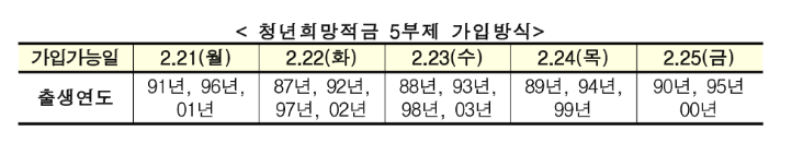일단 정식출시되는 첫 주에는 사람이 몰릴 것을 대비해서 5부제 가입 방식이 적용될 예정입니다. 가입은 은행 창구를 통한 대면 가입이나 은행 앱을 통한 비대면 가입 모두 가능합니다.