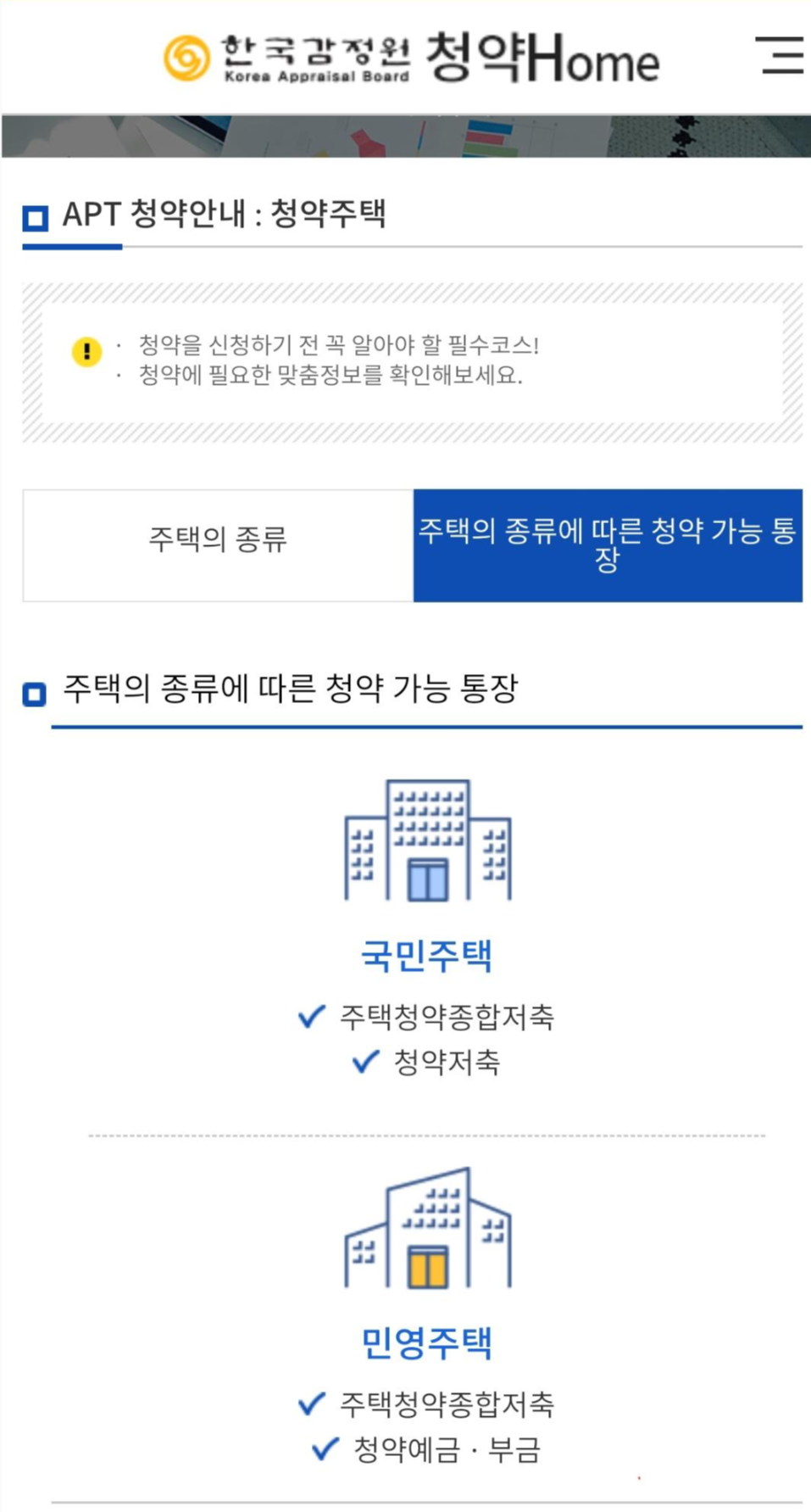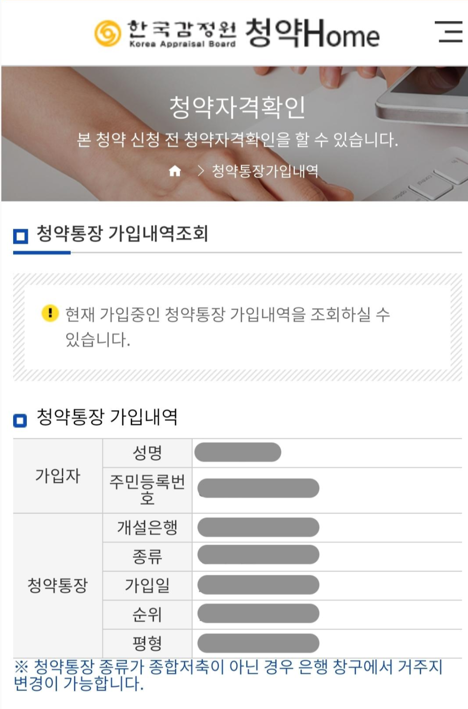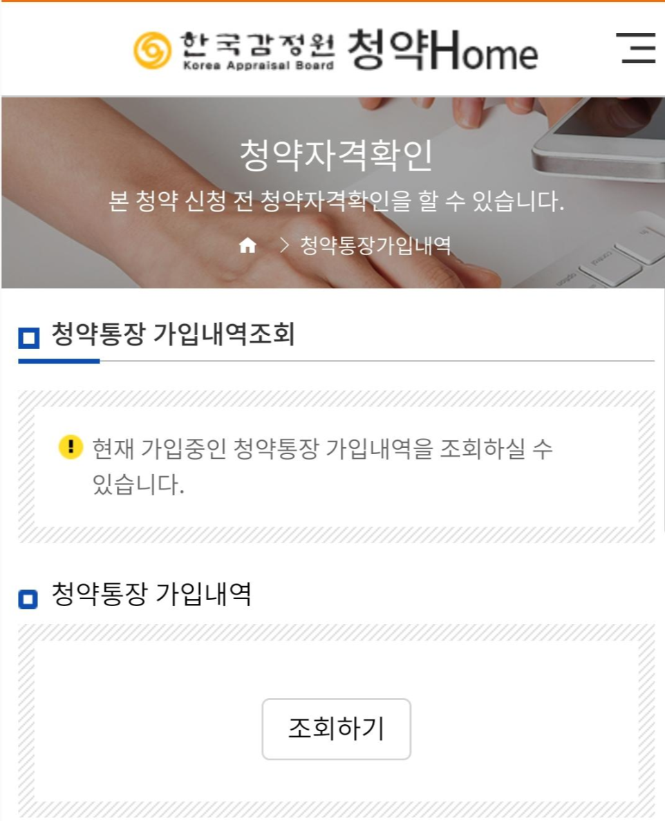PC 버전과 마찬가지로 청약통장과 가입자에 대한 몇 가지 정보를 확인할 수 있습니다.