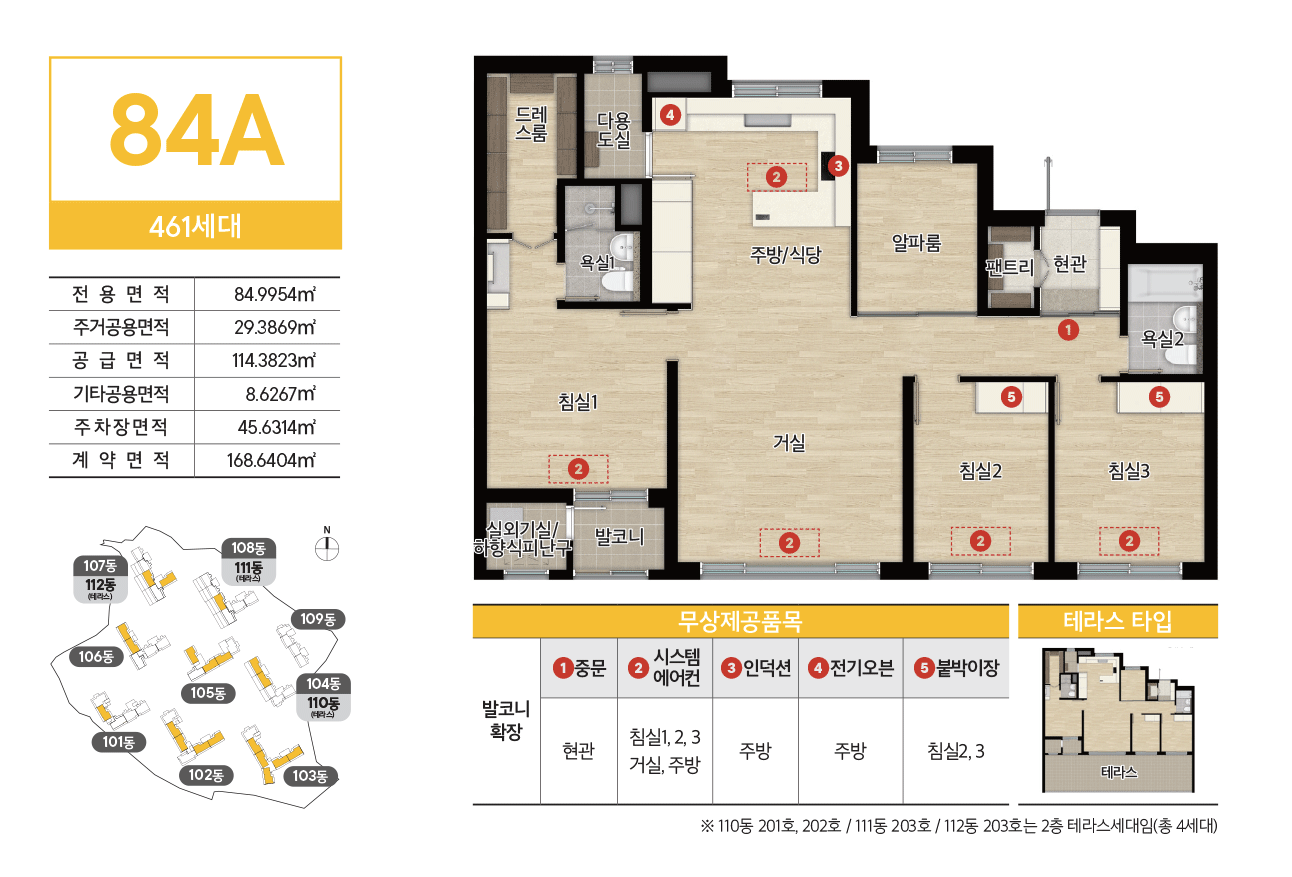 참고로 발코니확장비는 무상이며, 시스템에어컨과 붙박이장, 중문, 전기오븐, 인덕션 등이 모두 무상으로 제공됩니다.