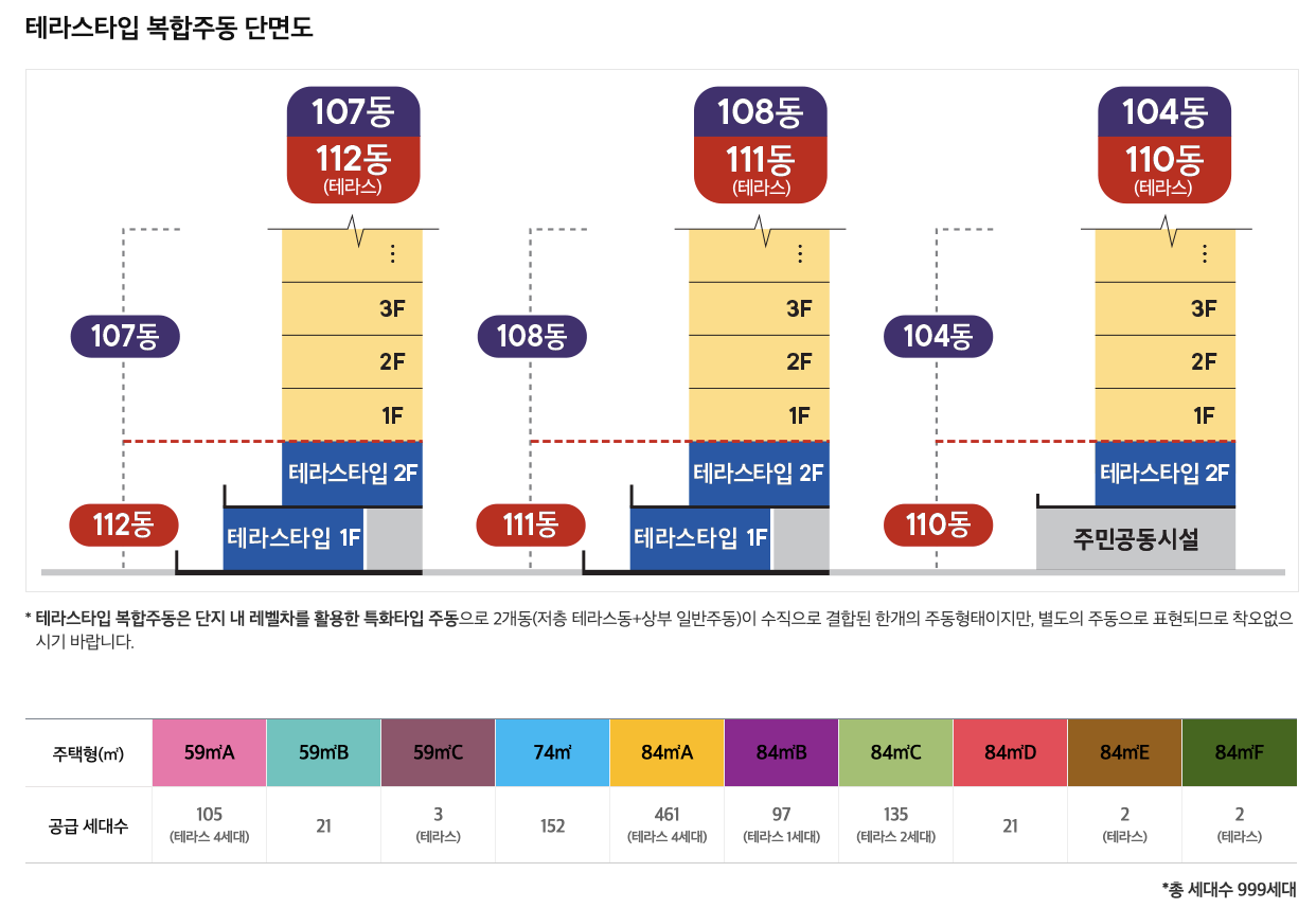 - 총 세대수 : 999세대 (주차대수 1,287대, 세대당 1.28대)